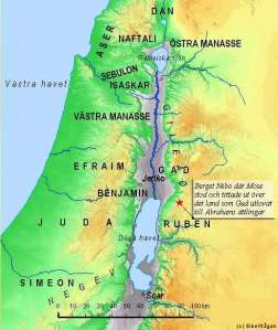 ”Så säger Herren, Israels Gud: På andra sidan floden bodde era fäder i forna tider, och även Tera, Abrahams och Nahors far. Där tjänade de andra gudar. 3 Men jag hämtade er fader Abraham från andra sidan floden och lät honom vandra genom hela Kanaans land, och jag gjorde hans avkomma talrik. Jag gav honom Isak, 4 och åt Isak gav jag Jakob och Esau. Jag gav Seirs bergsbygd till besittning åt Esau. Men Jakob och hans söner drog ner till Egypten. 5 Sedan sände jag Mose och Aron och slog Egypten med plågor som jag sände bland dem, och därefter förde jag er ut.6 När jag förde era fäder ut ur Egypten och ni hade kommit till havet, förföljde egyptierna era fäder med vagnar och ryttare ända till Röda havet. 7 Då ropade de till Herren, och han satte mörker mellan er och egyptierna och lät havet komma över dem, så att det täckte dem. Ni såg med egna ögon vad jag gjorde med egyptierna. Sedan bodde ni i öknen en lång tid.