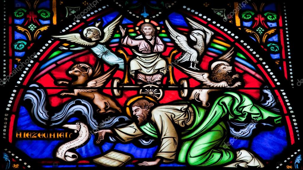 ”Ovanför valvet över deras huvuden syntes något som liknade en tron gjord av safirsten. På det som liknade en tron satt en gestalt som såg ut som en människa. 27 Och jag såg något som liknade glänsande malm, omgivet runt omkring av något som liknade eld, från det som tycktes vara hans höfter och ända upp. Och neråt, från det som såg ut att vara hans höfter, såg jag något som såg ut som eld omgiven av ett sken. 28 Skenet syntes runt omkring som bågen i skyn en regnig dag.